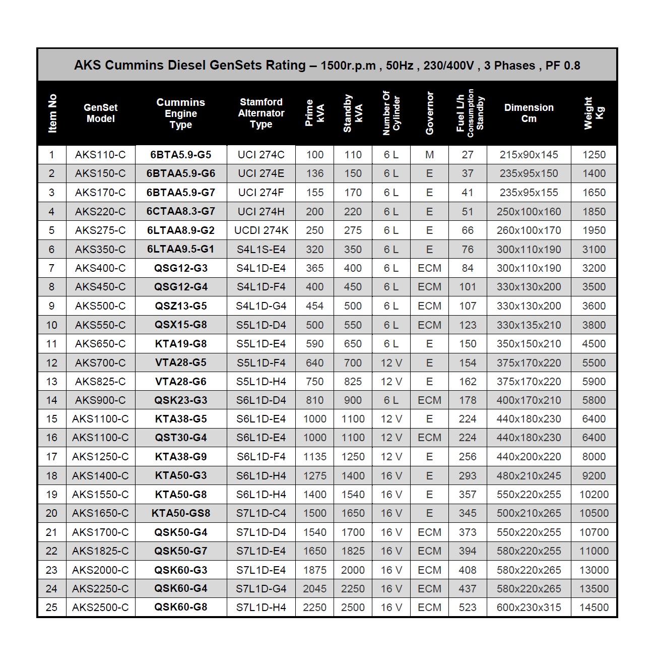 Rating – 1500r.p.m , 50Hz , 230/400V , 3 Phases , PF 0.8