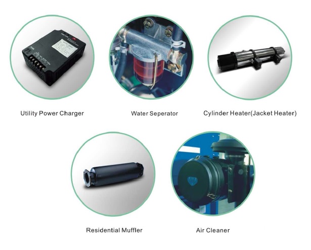 4) Exhaust muffler, flexible, battery, battery cables, daily fuel tank.